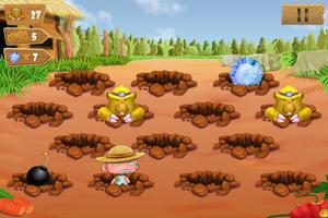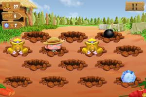 - As toupeiras estão roubando vegetais no jardim do avô. Você tem que detê -los batendo na cabeça deles, não os deixe fugir.