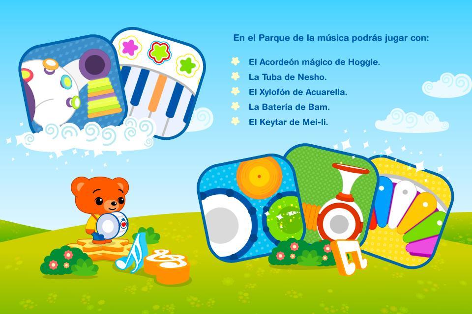 Cada parque temático possui brinquedos digitais que permitem explorar música, pintura e jogos de 2 ou mais participantes.