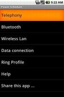 O cronograma de energia é um aplicativo leve, projetado para Android. Ele permite que você defina um cronograma ligado/desligado para o modo de avião (telefonia), Wi -Fi, Bluetooth e conexão de dados. O perfil do anel pode ser alterado automaticamente entre silencioso e normal