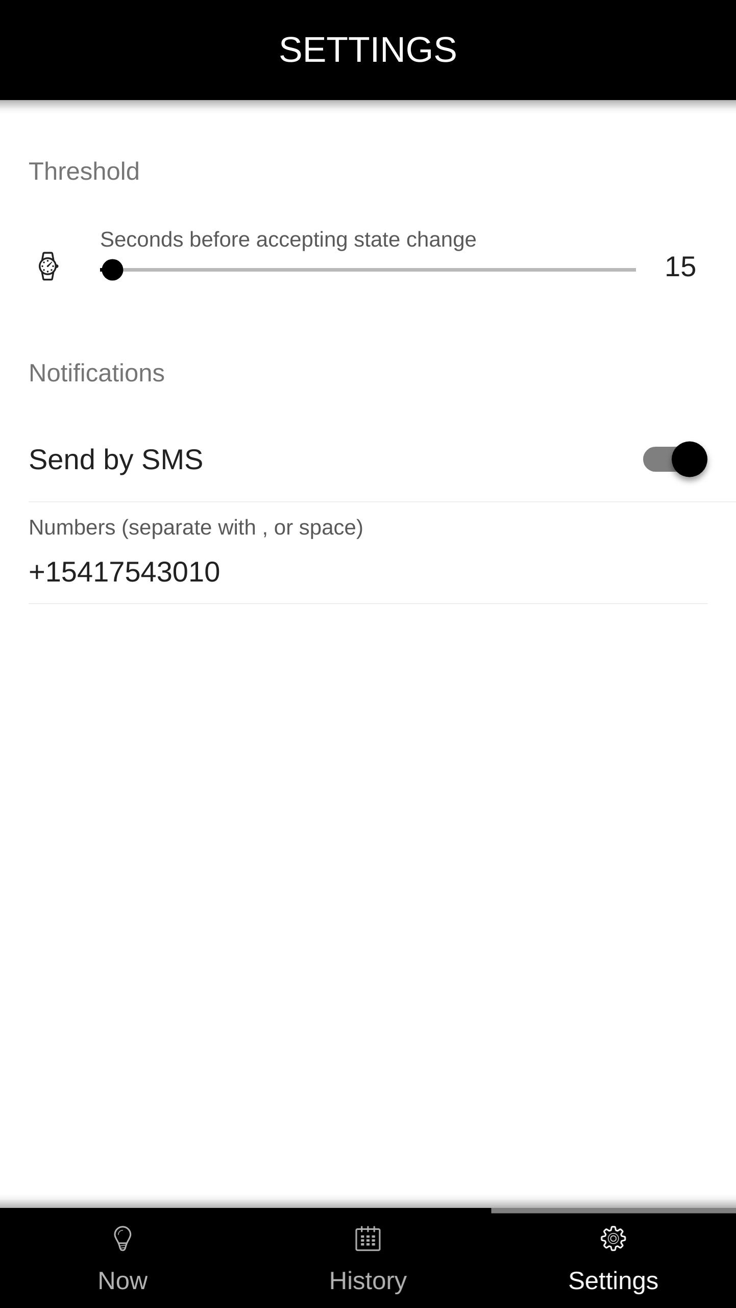 Envie a notificação do SMS qualquer que seja o poder, quando aconteceu e a duração do estado anterior. Suporta vários números. A taxa de SMS padrão se aplica.
