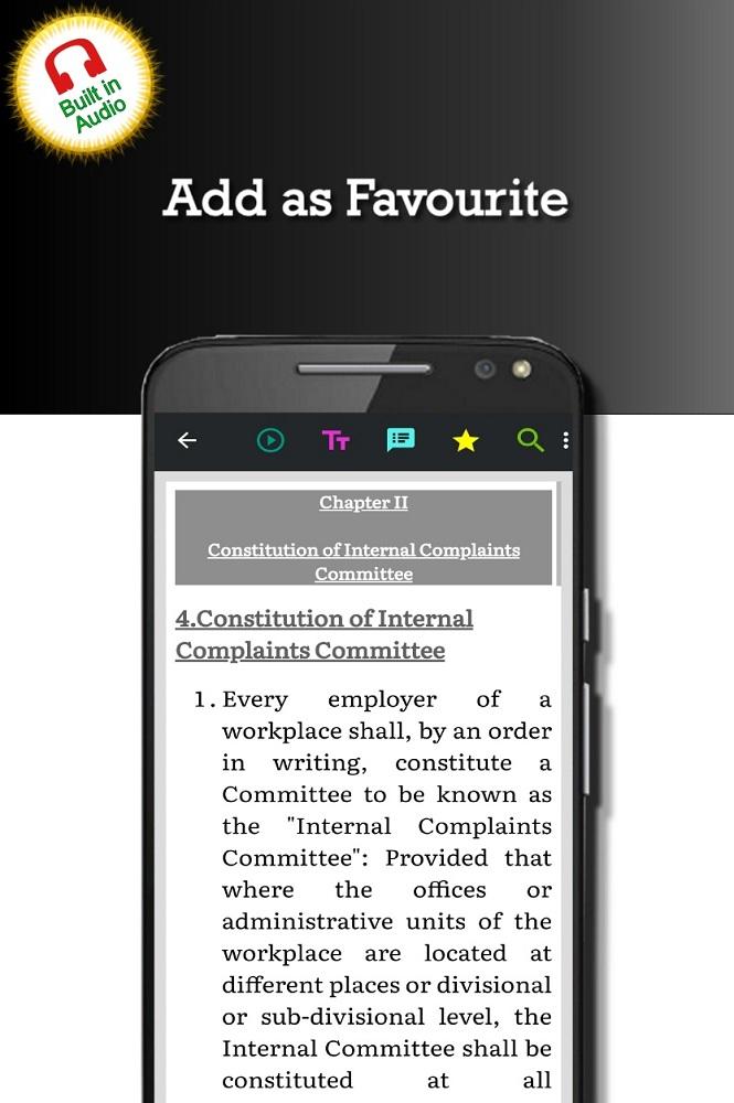Esse aplicativo 'assédio sexual de mulheres no Workplace Act 2013' é muito útil para profissionais de direito (advogado, advogado ... e outros.), Professores, estudantes, qualquer pessoa interessada em aprender essa lei da Índia.