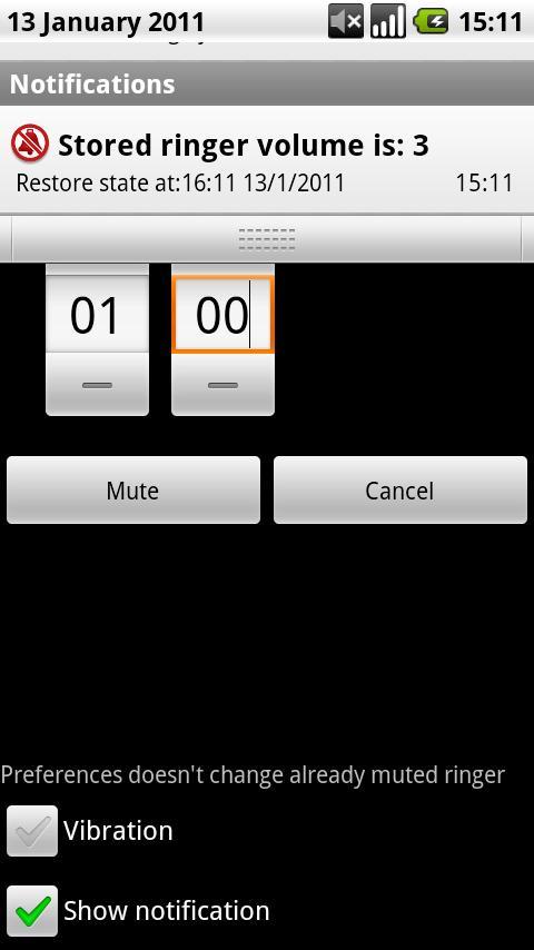 Você acabou de definir quanto tempo seu celular será silenciado. Você não precisa cuidar do aumento do volume - ele é automatizado. O nível de volume retornará ao valor inicial.