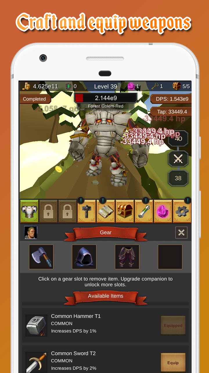★ Crie novos itens e equipá -los em seus companheiros para aumentar o DPS, ganhou ouro, chance de gota no peito e muito mais.