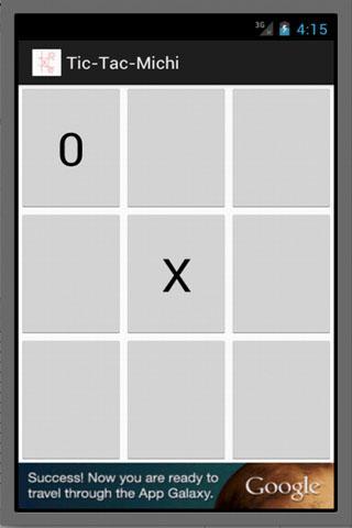 Este é um pequeno jogo de tique-tac-toe (Michi, no Peru) preparado para uma apresentação de introdução à Android que demonstra vários conceitos. Ele é lançado sob a GPL na esperança de que você ache útil, mas não prometa que seja útil.