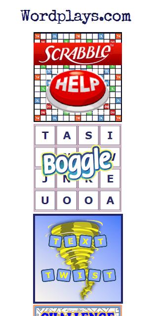 Aqui está um conjunto de jogos de solução de palavras e palavras de solução de palavras que aprimorarão suas habilidades de jogo de palavras e o ajudarão a ganhar todos os jogos de palavras. Scrabble Ajuda, palavras com amigos ajudam a fazer palavras usando suas letras. Scrabble Cheat, Words With Friends, Lexulous Cheat Deixe você encontrar a melhor jogada usando toda a placa Scrabble.