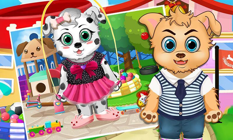 Dogs and all kinds of pets need to be kept happy and healthy while they're at school or at play. Care for each of the animals as you run your very own dress up day care and nursery service for cute dogs. Bring each puppy into the nursery and feed them yummy food. Some dogs don't like vegetables, but you have to make sure they grow up to be strong enough to play! Once they're fed, take the pets to your dress up room for tons of cute costumes and clothes. Mix and match tops, pants, shoes and other doggy accessories for that perfect look!