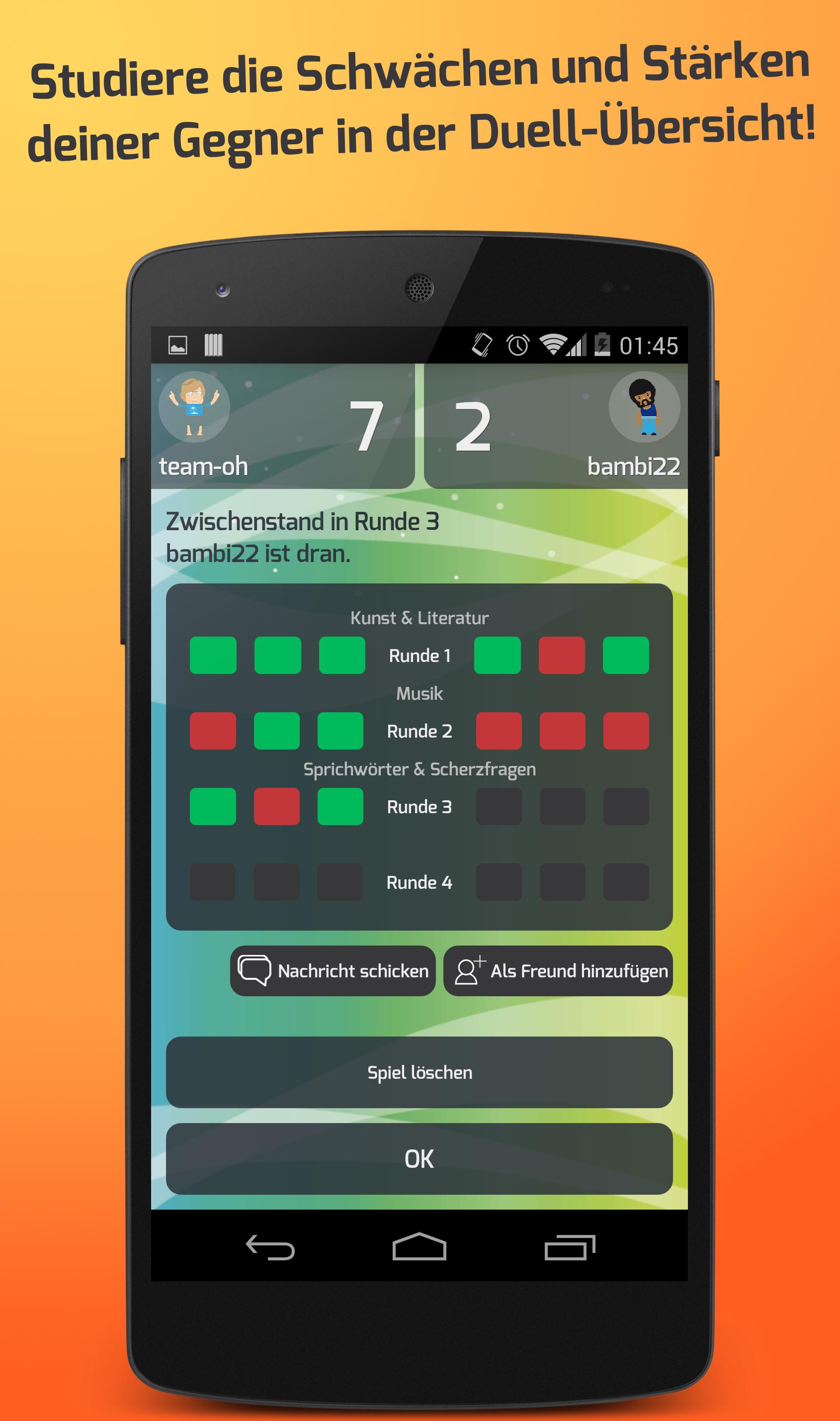 ★ Exciting online quiz duelle against your friends, Facebook friends or opponents of random!