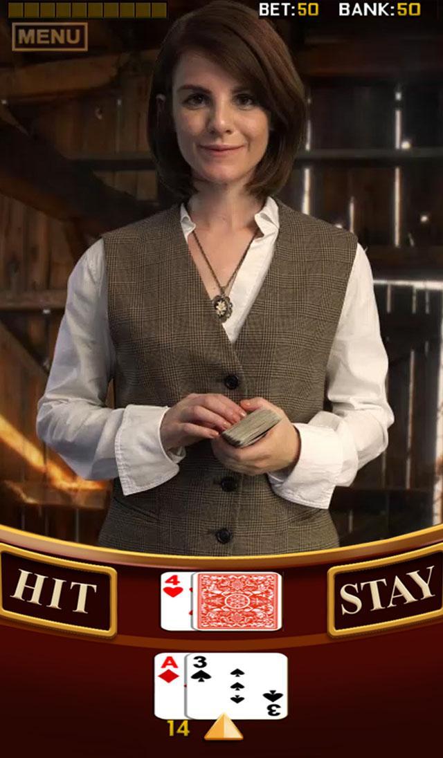 Play a video interactive game of blackjack against one of 14 attractive dealers.
