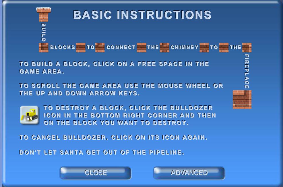 Rare Christmas Gift is a puzzle game about Santa Claus. It’s Christmas time and Santa is about to bring presents, but he meets a big trouble! Your fireplace is fake and is not connected to the chimney and Santa can’t get into your house! You must fix it before it’s too late. To build a block, click on a free space in the game area. And you should think over before you put down the block under your finger. Don’t let Santa get out of the pipeline. Hurry up and good luck!