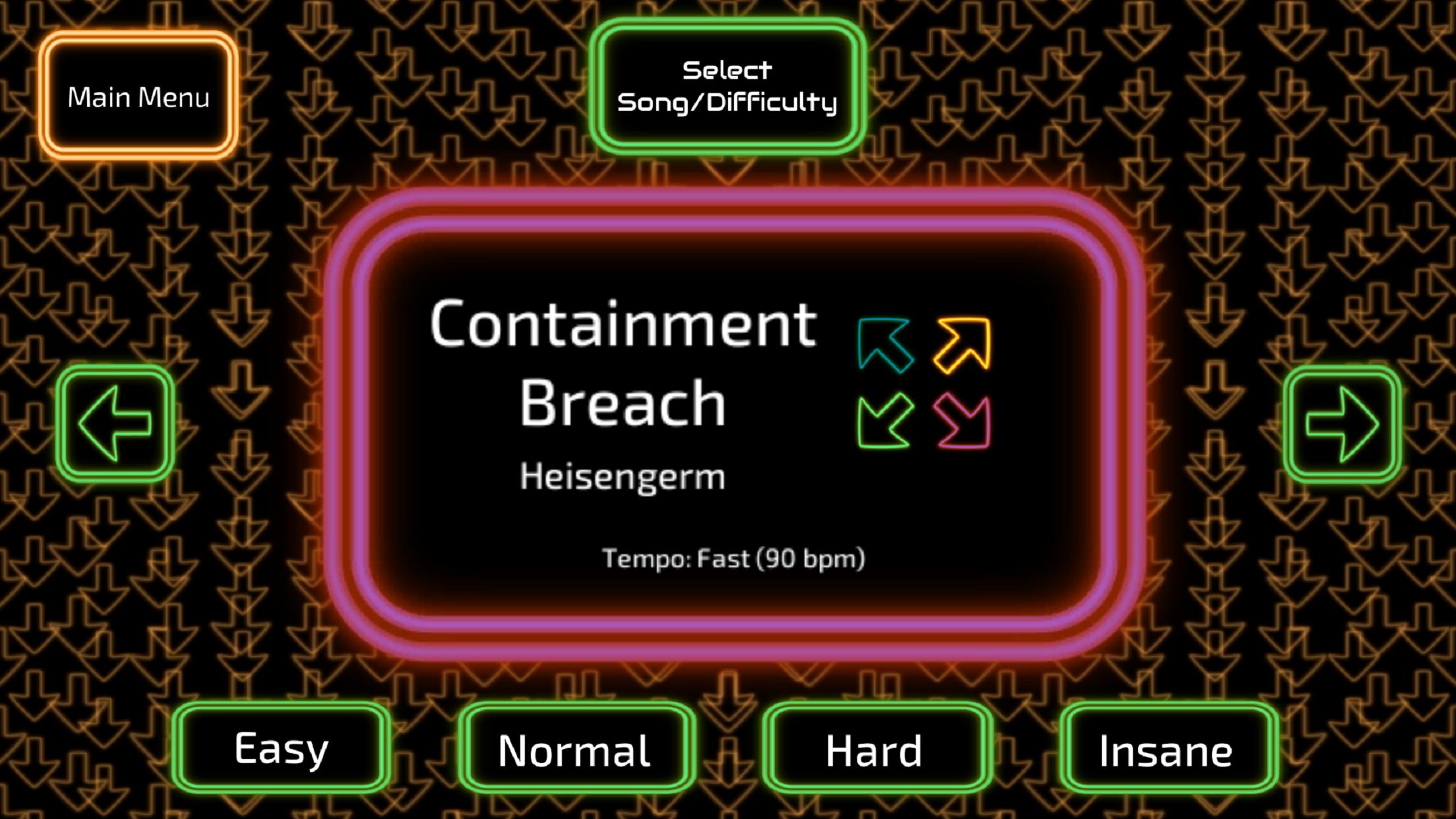 Start out with Easy mode to get the hang of it, and unlock more modes as you get higher scores! As difficulty goes up, you will need to remember arrows on downbeats AND upbeats! Get enough points to unlock the secret Insane mode, with up to 7 arrows to remember each measure!