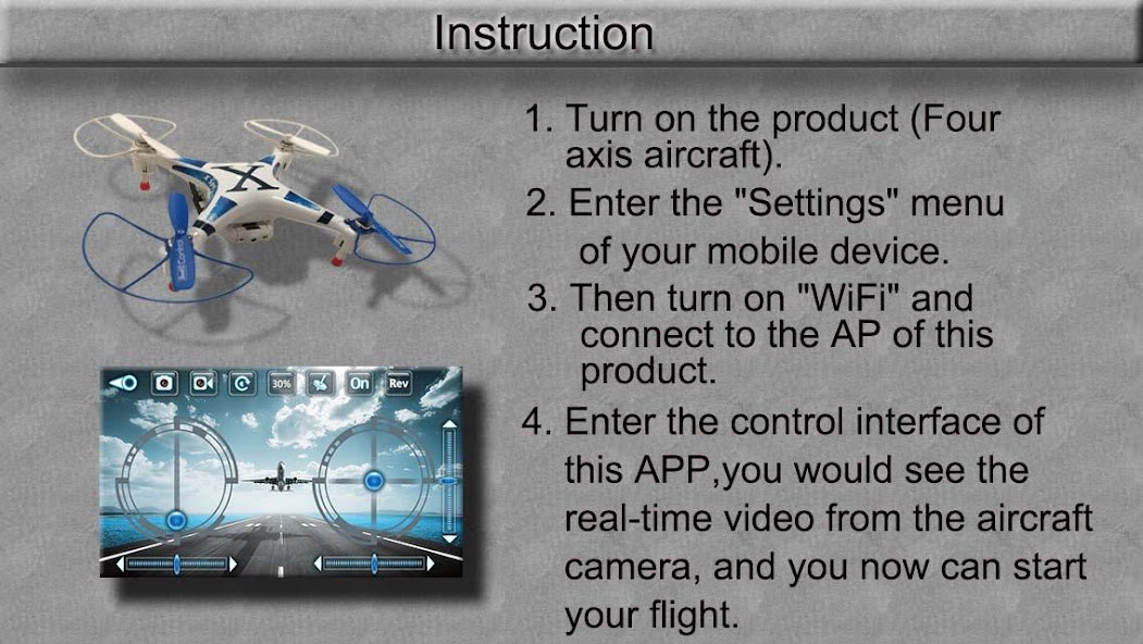 The APP can control the 4-axis aircraft by WiFi signal on the Android smartphone