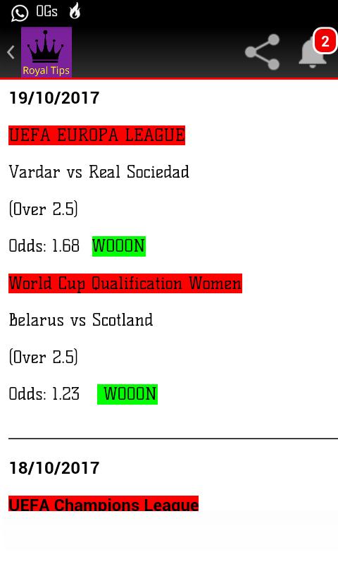 ROYAL TIPS gives much safer tips to bet on promising a 5/7 per week.The tips will be posted daily at 3+ GMT in all the sections.