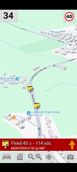 CamerAlert работает в двух разных режимах: карта и список. В режиме карты основной дисплей представляет собой карту с расположенными камерами. Это может быть показано либо как «север вверх», либо «курс вверх». Режим списка просто показывает список всех камер в области, подчеркивая те, к которым вы приближаетесь.