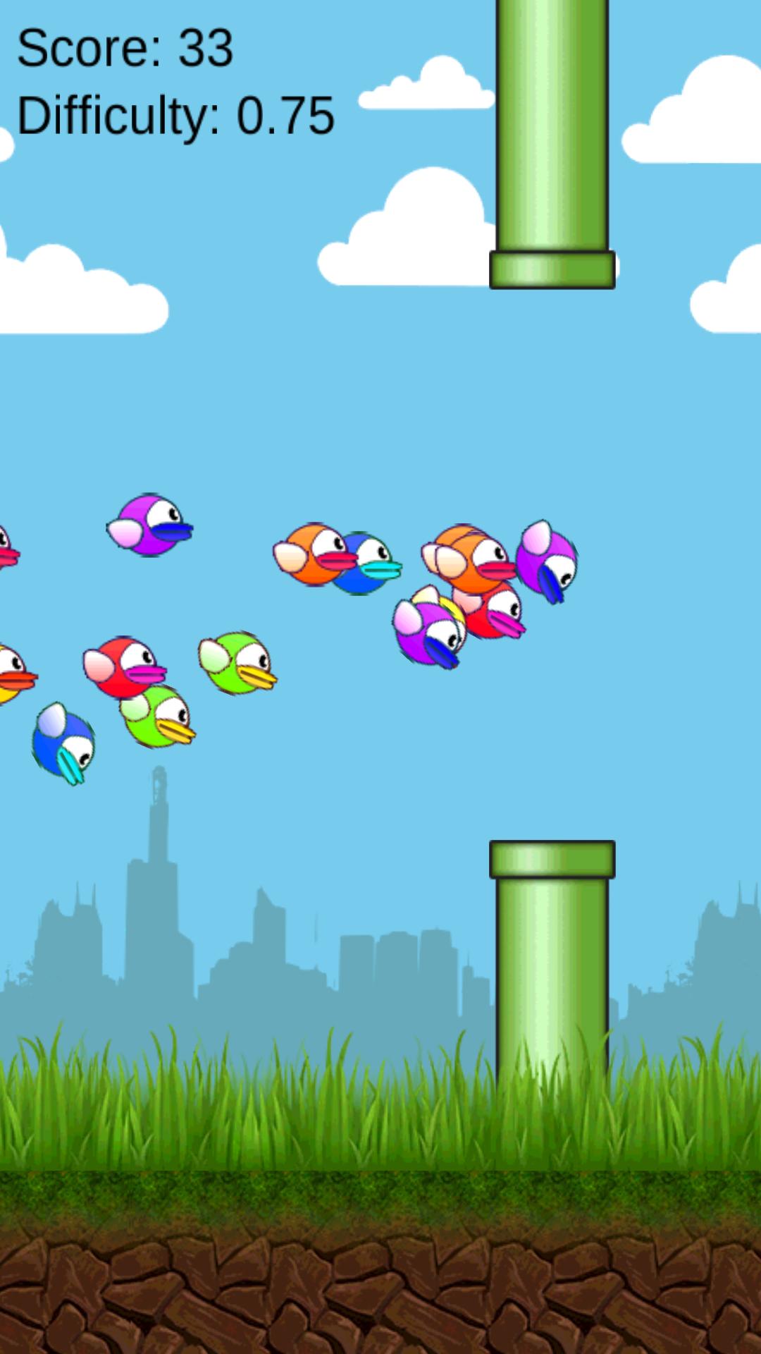 Красочные птицы не облегчат вашу жизнь, они не ведущие птицы, которые не могут пройти первую трубу, они гибкие, а их скорость со временем увеличивается!