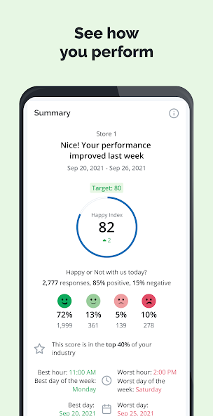 HappyOrNot помогает превратить реакцию в прибыльные действия. Улучшите свой опыт работы с клиентами, выявите проблемы и взаимодействуйте как с сотрудниками, так и с клиентами.