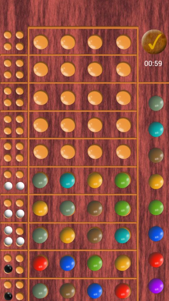 Эта игра предлагает восемь цветов и два уровня. Легко, что не позволяет дублировать цвета в секретном коде или жестком режиме, который позволяет дублировать цвета.