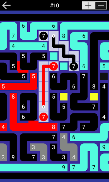 Нарисуйте яркие, жирные линии цвета, соединяющие пары цветных чисел. Длина каждого пути должна соответствовать числам на двух конечных точках. Нарисуйте назад или двойной нажмите, чтобы исправить ошибки. Есть только один способ сделать это, и все квадраты будут содержать кусок пути, когда головоломка решена.