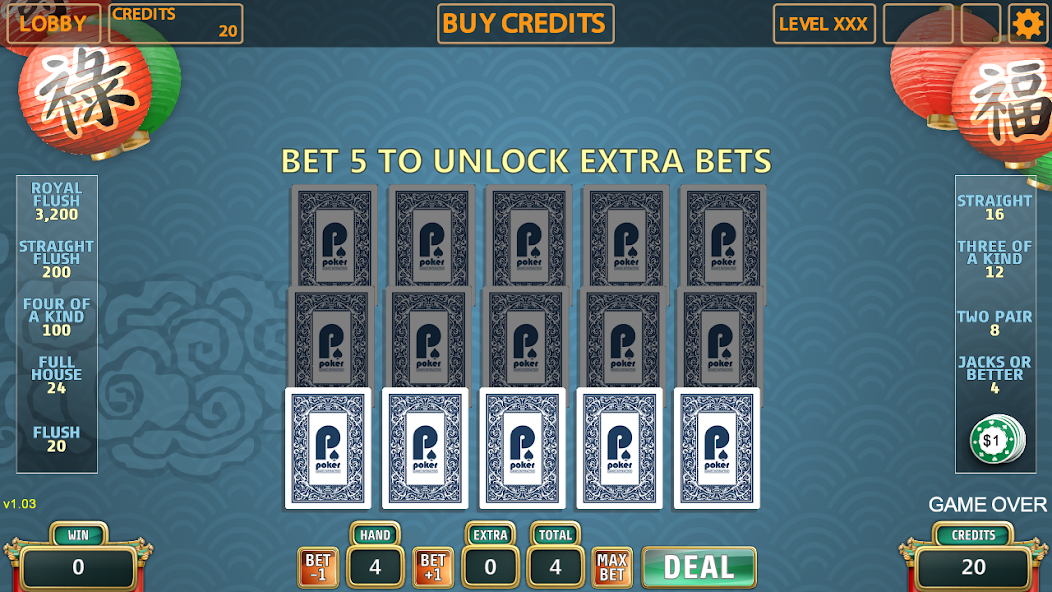 Испытайте классический видео -покер с изюминкой. Вы можете сделать ставку на две дополнительные карты замены для каждой карты в вашей руке. С игрой до десяти дополнительных карт, эта быстро развивающаяся покерная игра дает вам дополнительные способы выиграть и более стратегический выбор для проверки вашего навыка. Если вы проигрыватель видео покера на основе навыков, вам понравится эта игра.