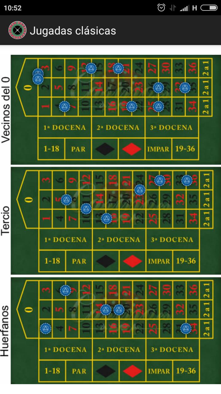 На экране показаны основные комбинации, чтобы сделать ставку, плюс 3 типичных пьес: сирот, соседи 0 и третий. Рядом с ними число указывает, сколько раз ведет без ухода.