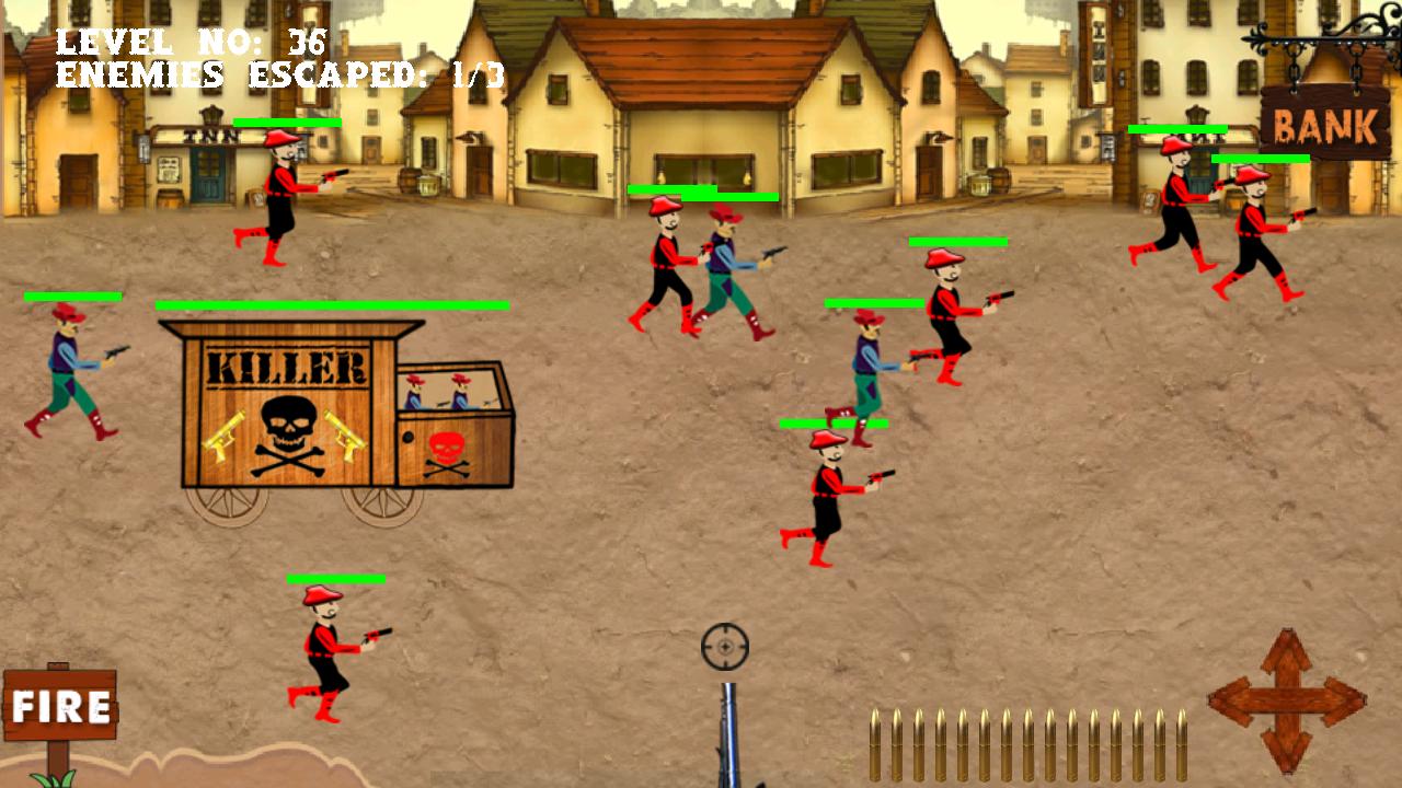 Здесь вы находитесь в городе Дикого Запада. Вы должны спасти свой город от банды бандитов и хулиганов. Берегите также другие существа. Время для какого -то действия.