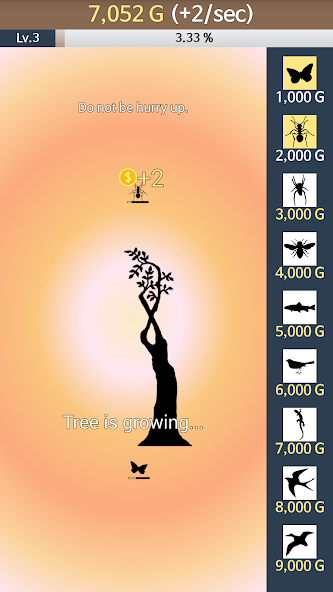 Every time you tap on a tree shadow, you get an experience point. If your experience point is max, you get level-up. The higher the level, the tree shadow grows and gets more branches. As the level-up, you can get a more money from the tree shadow.