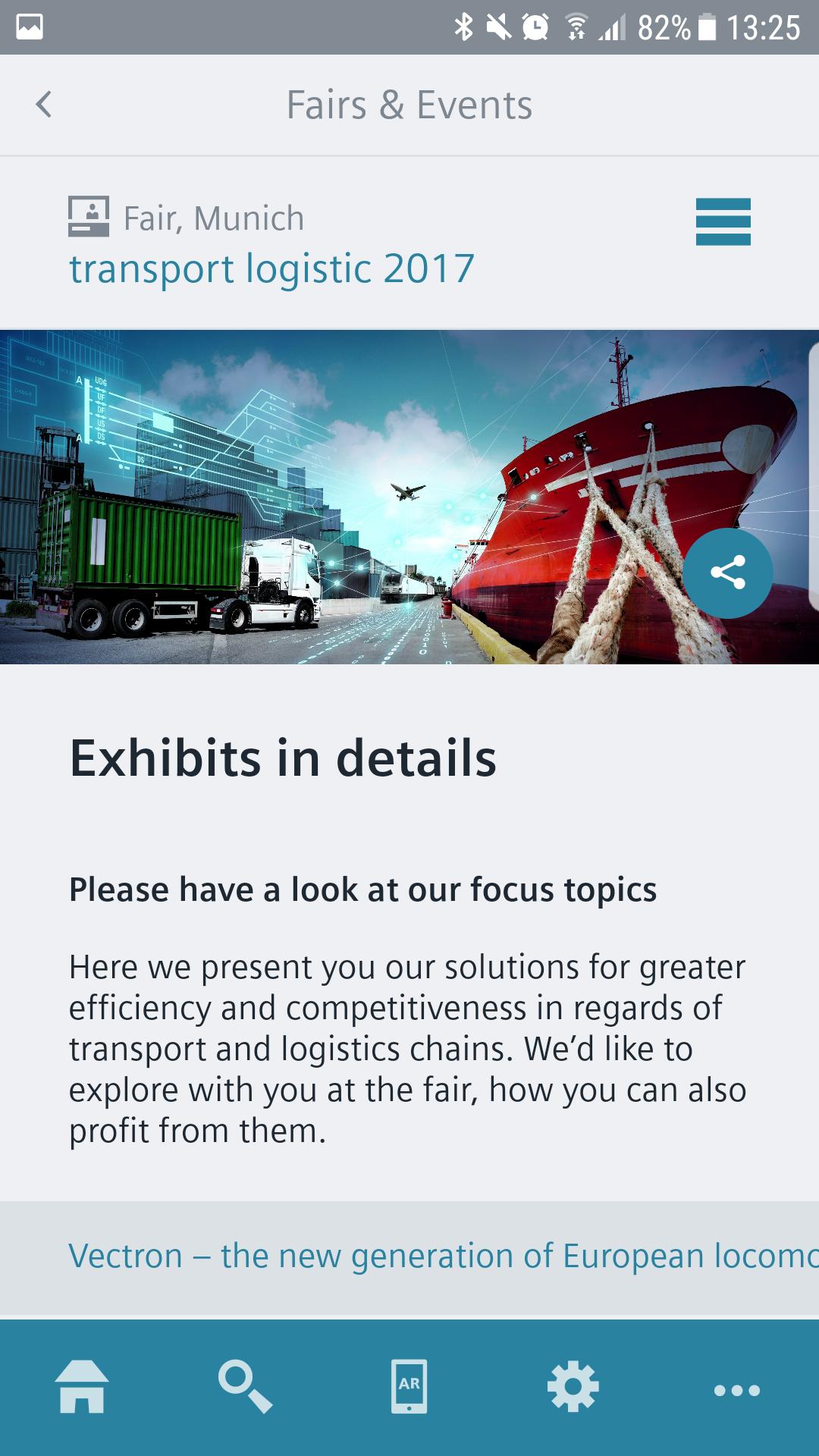 Siemens Fairs & Events is your personal guide to Siemens’ activities at selected events providing fast access to all relevant event information via a new and improved user interface. It makes this application the ideal companion for your visit at every event with Siemens participation.