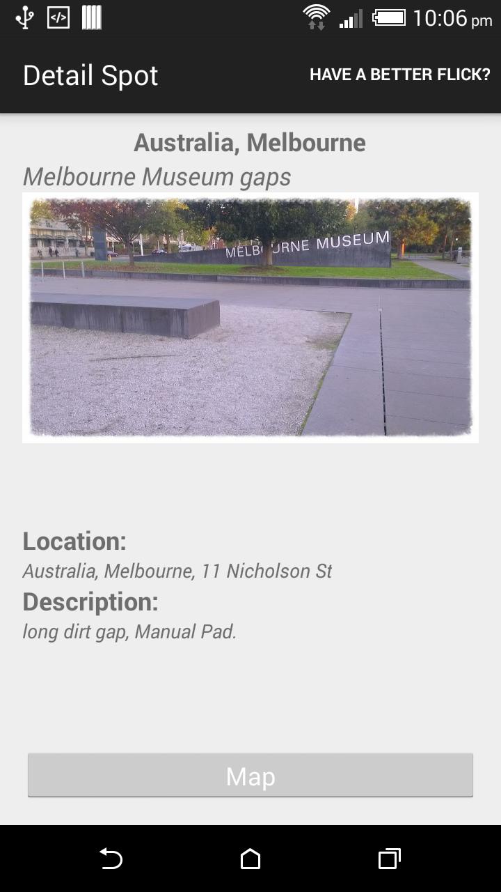Spread the word! Your next skateboard spot in the palm of your hand! SkateSpot Directory connects you and your fellow skateboarders so you can share and find the next best skate location. It doesn’t matter if you’re the new guy in town or have been out of the skating scene for a while, get connected to your area and find the spot that’s perfect for you. Areas covered are now mainly in Melbourne, Australia, but if you’re from another country please suggest a spot in the app to spread the skate knowledge. Share your spots on SkateSpot Directory!