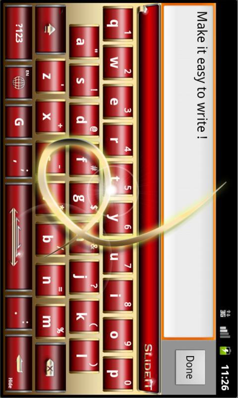 This is a skin addon to change the look of SlideIT keyboard to have Sparkly Gold and Silver Look.