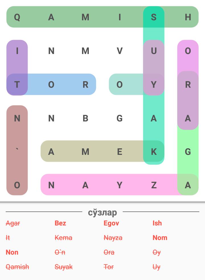 ★ The game can be played in Uzbek and 2 Hil, Cyrillic and Latin spokeswide.