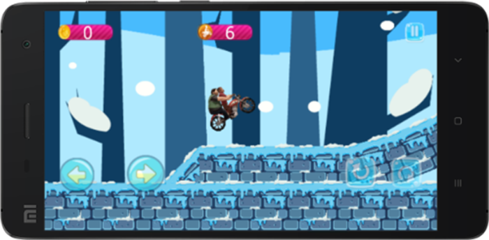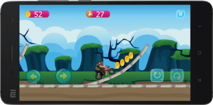 This game is very easy to play for anyone, because there are 4 control buttons that can control the game character. To run the motorbike press the Forward button on the left side of the screen, and when the motor is in the air the player can use two Rotation buttons that are in the right corner of the screen to control the motor.