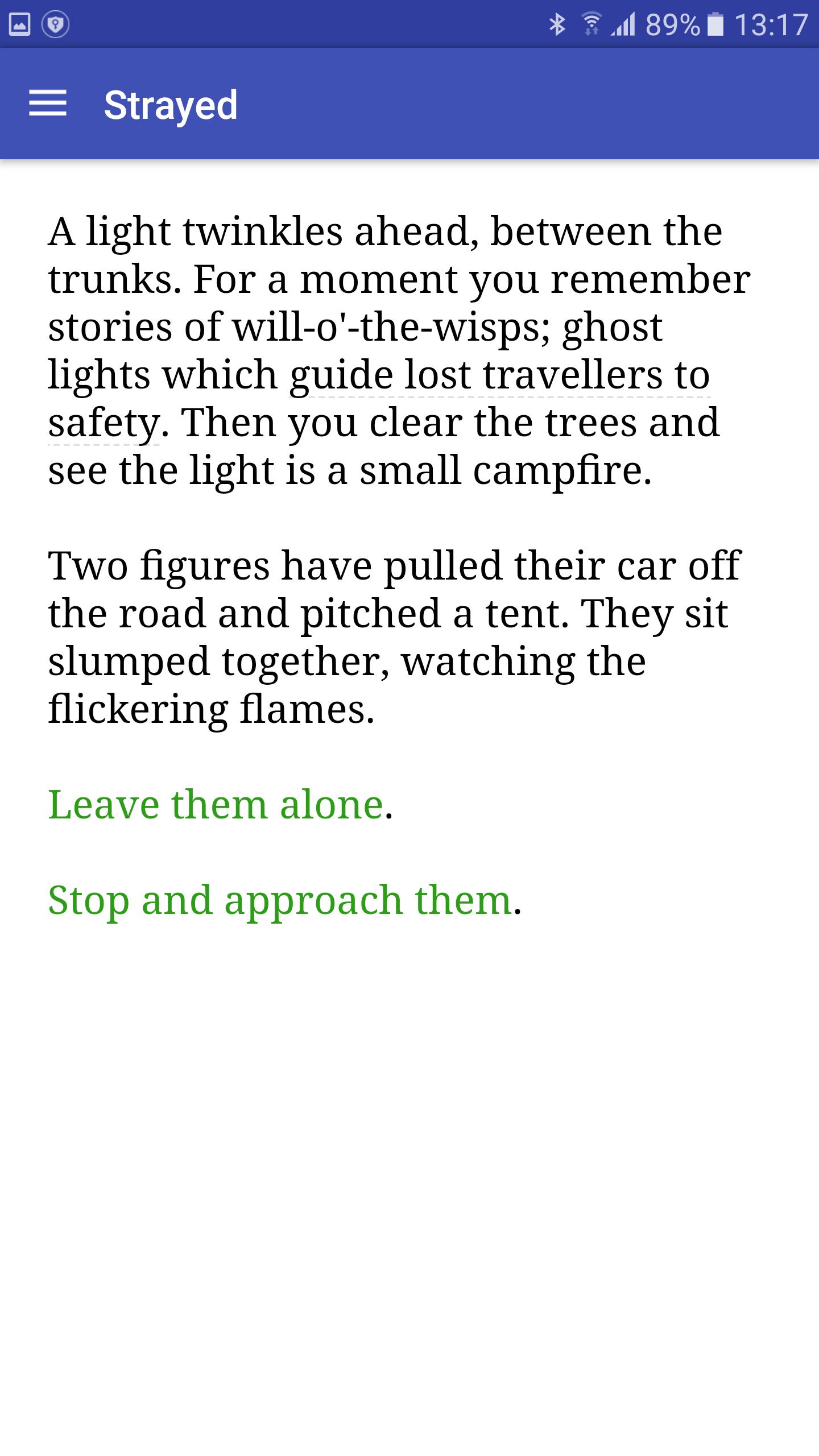 Strayed is an interactive short story about the mysteriously long fifteen miles between you and the safety of home.