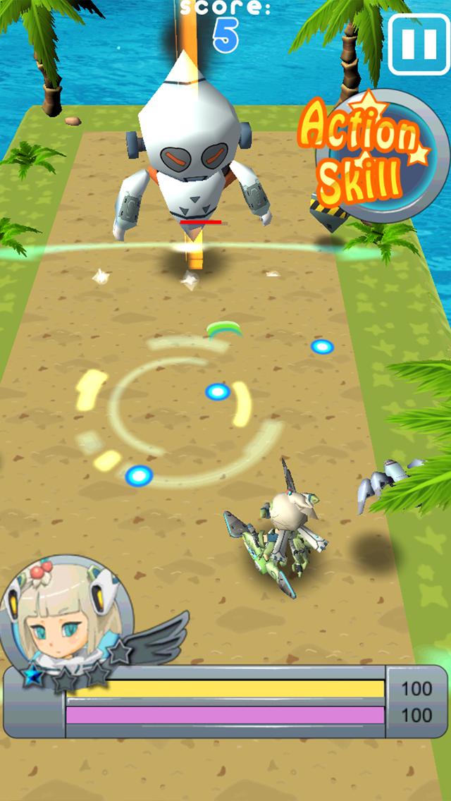 Kary is the princess of robot planet. One day, evil robot Dark-V to invade the robot planet. Your mission is to fight back the enemies rushing towards you, get the fighter for some non-stop fighting and save the planet!