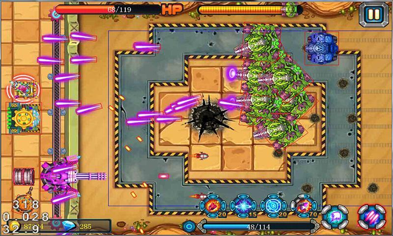 It is very simple , you just need touch the screen to control the turret move up and down.There is a shield in the front of turret, which can resist the shell and help you pass the level.Besides,there are powerful upgrade system,the update of shell and skill,all giving the palyer unprecedented pleasure experience。 In one word , this is a high playability tower defense game.