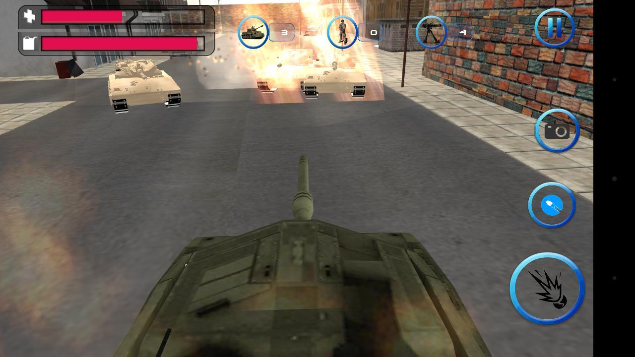 The health level of your tank will decrease with each hit from the enemy so roam the city to find boxes with plus sign for health. Also you will have limited anti-tank shells so you will have to use your ammo wisely.