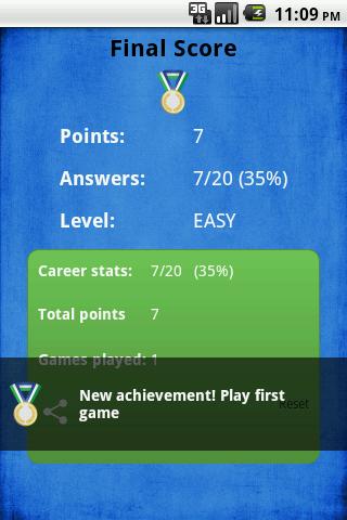 เกมตอบคำถามสำหรับผู้เล่นหนึ่งหรือสองคนพร้อมคำถามเกี่ยวกับการแข่งขันฟุตบอลโลกบาสเก็ตบอล ทุกรอบมีคำถาม 20 ข้อที่มีเวลา จำกัด มันมีสามระดับความยาก มีคำถามเกี่ยวกับประวัติศาสตร์การแข่งขันชิงแชมป์ฟุตบอลโลกบาสเกตบอล FIBA (ปี, ประเทศเจ้าภาพ, ผู้ชนะและผู้แพ้, ... ), ทีม (เหรียญ, ผู้เล่น, ... ) และผู้เล่น (ทีม, ตำแหน่ง, เพื่อนร่วมทีม, ... )