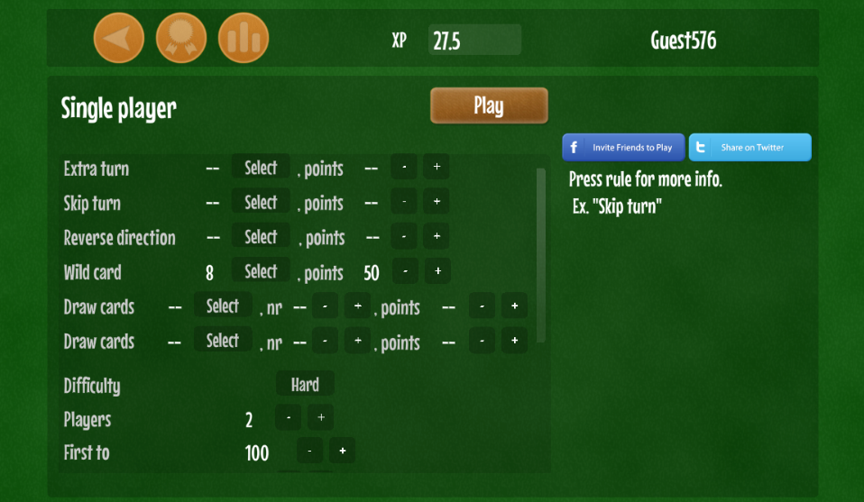 กฎที่ปรับแต่งได้ช่วยให้คุณเล่น Crazy8 ได้เช่น Crazy Jack, Crazy Kings, Crazy Aces และเกม Crazy 8s อื่น ๆ อีกมากมาย