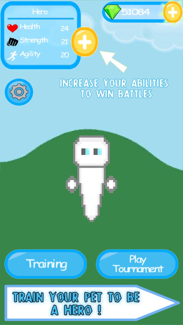 ดูแลฮีโร่/สัตว์เลี้ยงของคุณด้วยการฝึกซ้อมด้วยมินิเกมต่างๆในพื้นที่ฝึกซ้อมโดยได้รับรางวัลที่ยอดเยี่ยมอัญมณีจำนวนมากรวมผลไม้ที่แตกต่างกันเกมหน่วยความจำจดจำการ์ดตัวเลขยิงเป็ดและอีกมากมาย!
