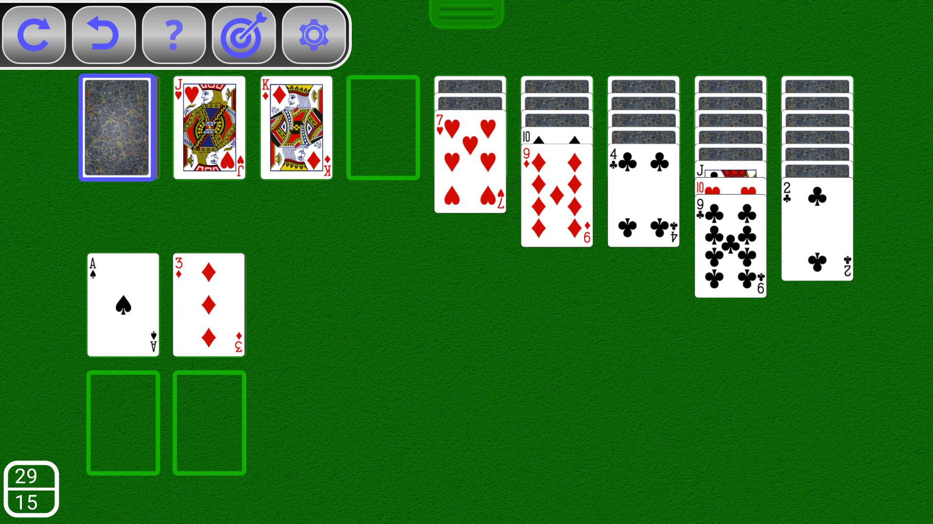 • Solitaire (เดี่ยวหรือสามการ์ดวาด Klondike หรือความอดทน)