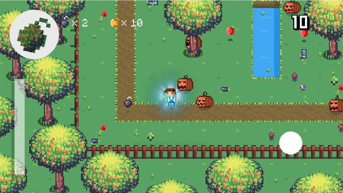 นี่คือเกมจากบนลงล่างที่คุณผู้เล่น (เกษตรกรอัล) พยายามหลีกเลี่ยงฟักทองให้มากที่สุดเท่าที่จะทำได้