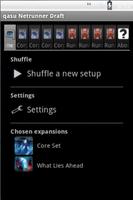 qasu Netrunner Draft Shuffles Decks ร่าง 4 Corpo และ Decks Decks Runner 4 Decks เพื่อเล่น Android Netrunner Draft เลือกชุดการ์ดของคุณจากนั้นคลิกที่ shuffle การ์ดที่เลือกอยู่ในแท็บถัดไป คุณสามารถปรับแต่งการสับเปลี่ยนตามเกณฑ์หลายอย่าง มีความสุข !