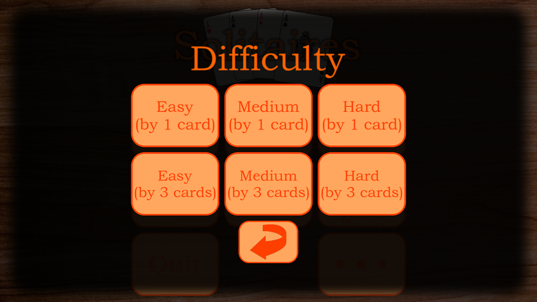 - Klondike Solitaire มี 3 ความยากและ 2 ประเภทเกม (เทิร์น 1 และเทิร์น 3);