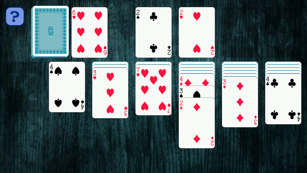 Klondike Solitaire เป็นความอดทนแบบคลาสสิกที่มีกฎมาตรฐาน: โซนด้านขวาคือ "บ้าน" สำหรับเอซ (ที่มีสัญลักษณ์ "A") และชุดเดียวกันและอันดับที่สูงกว่า (ตัวอย่างเช่น: Ace-two-Three-Four ... ) เซลล์อิสระที่มีสัญลักษณ์ "K" สำหรับ King