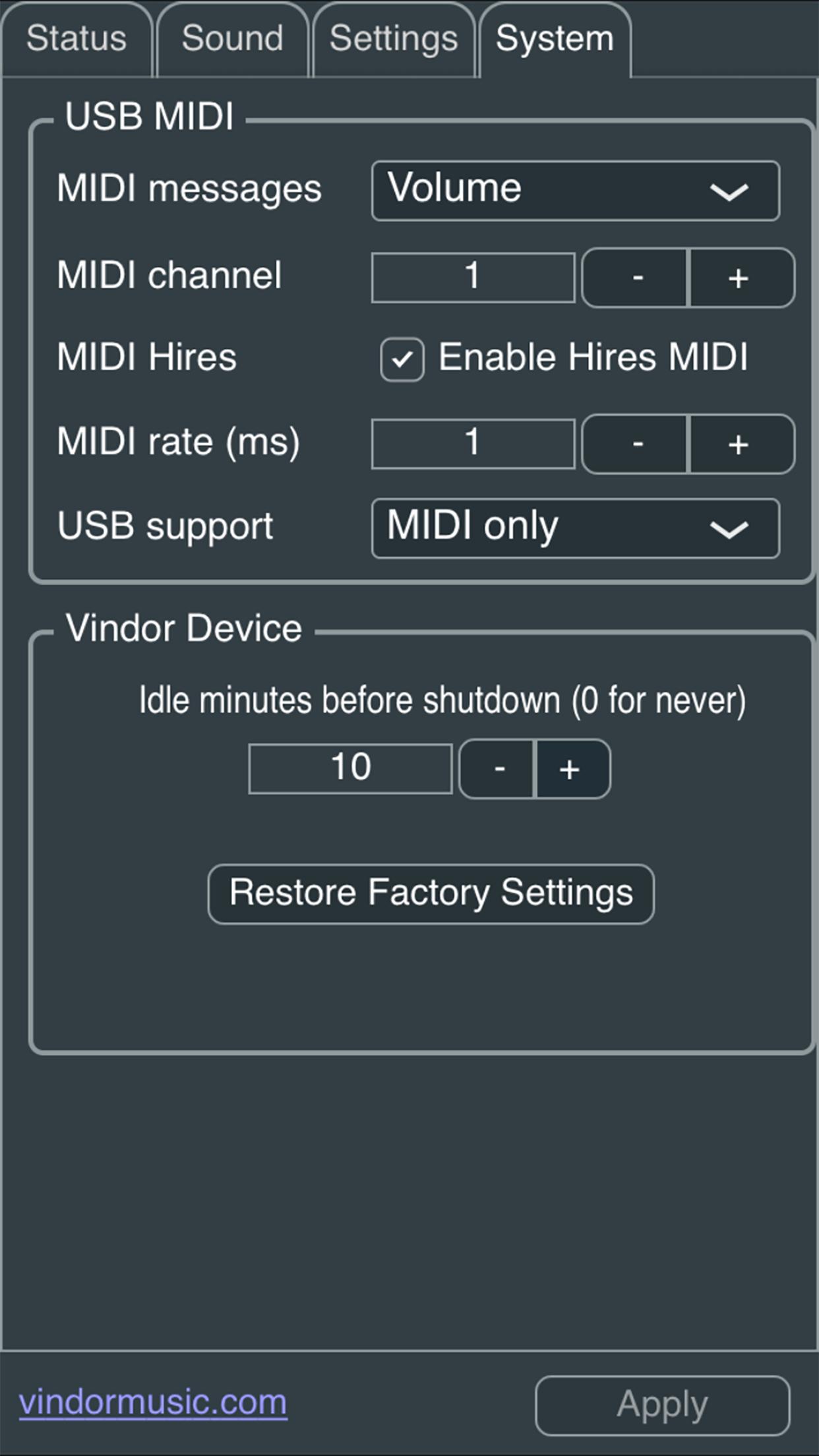 Vindor ES1 Electronic Saxophone configuration utility