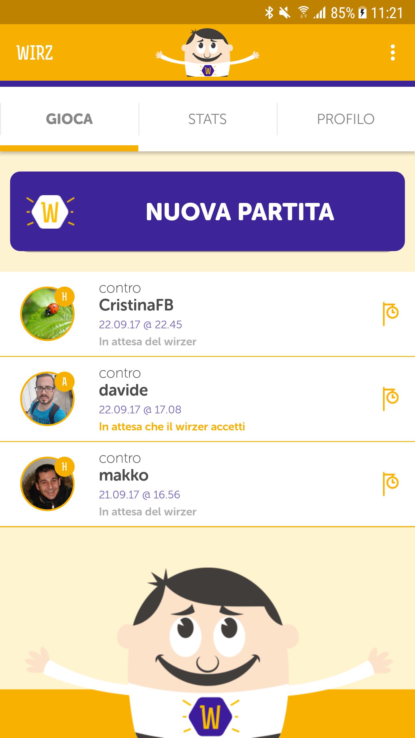 - Facebook opponent: all your Facebook friends are displayed which are also Wirz Ers, that is, who have installed Wirz on their smartphone;