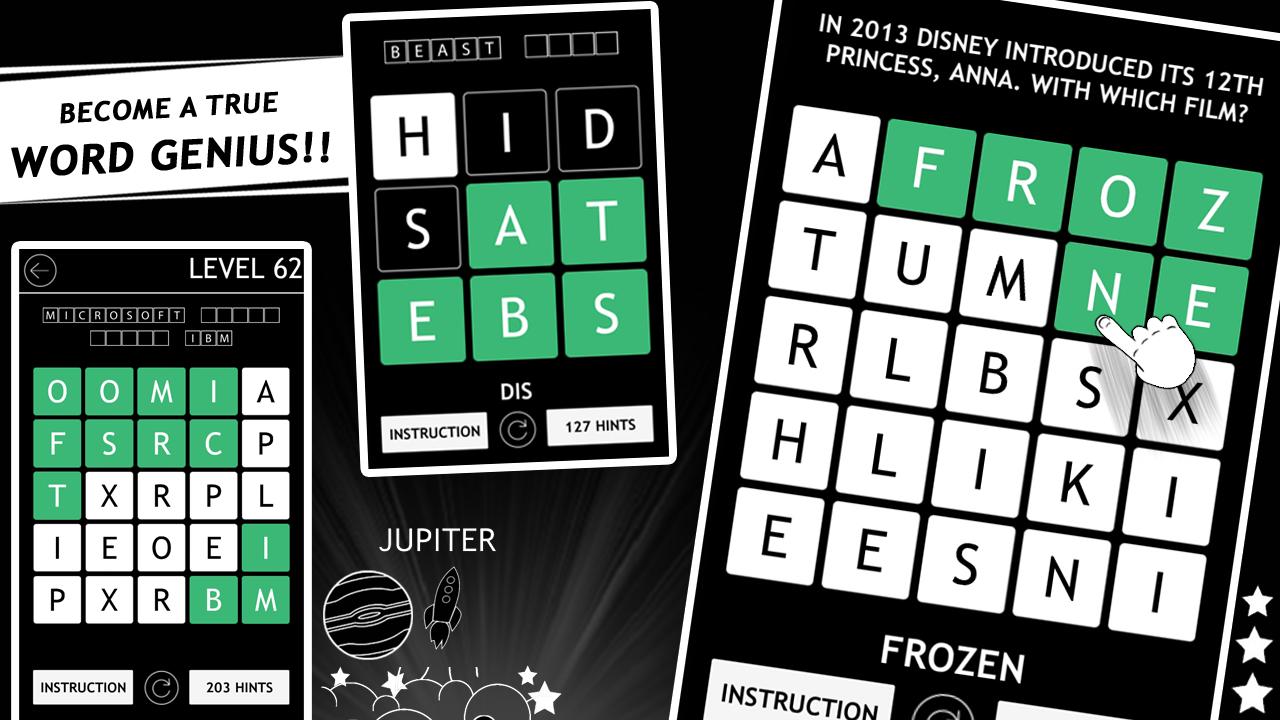 This game is a true brain quest. It will train it to identify words from scrambled letters
