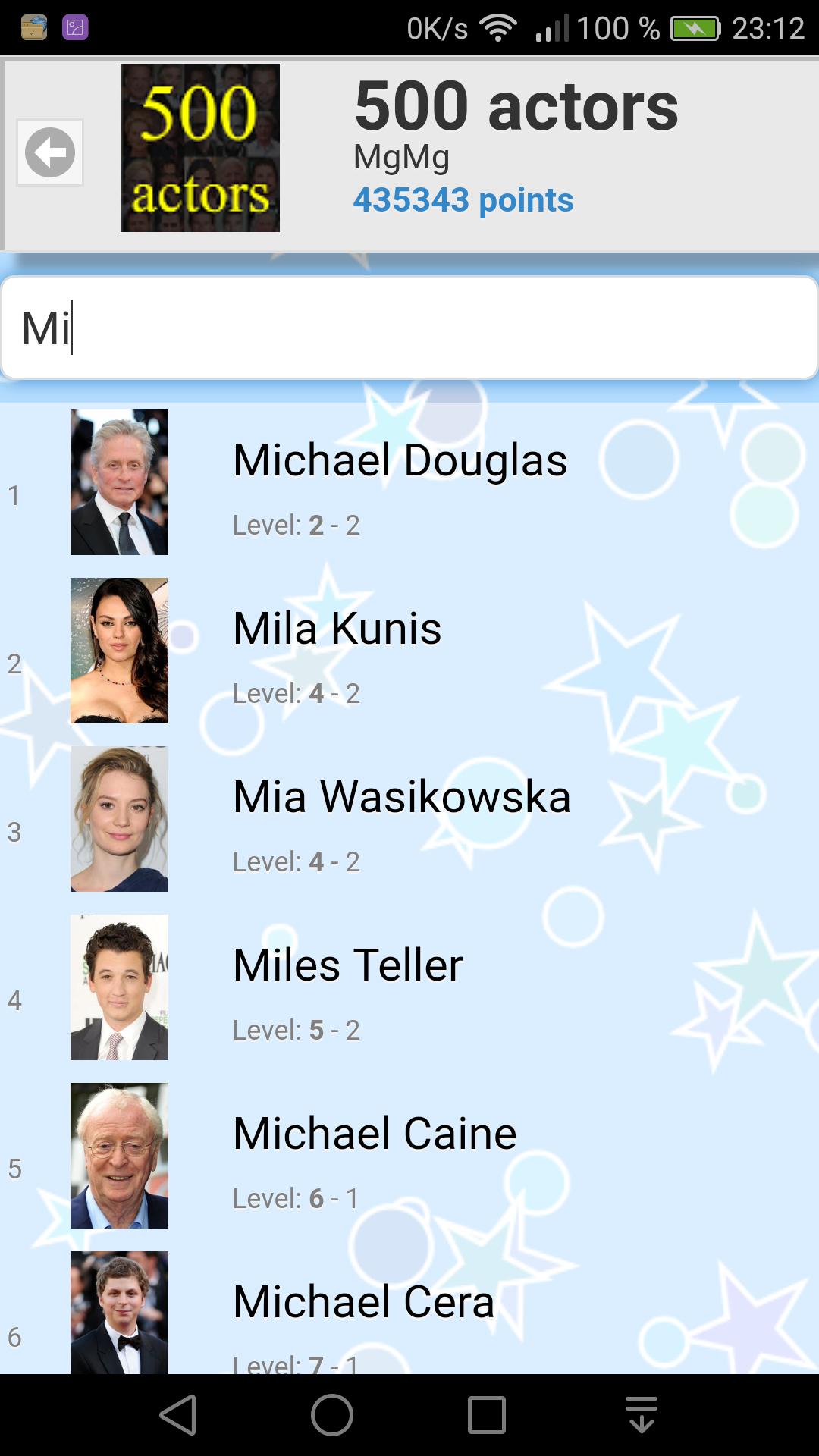 25级,每个级别都有20个不同的演员