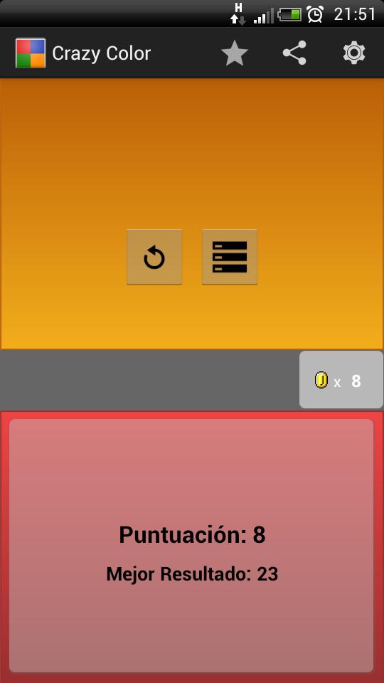 通过您的结果制作屏幕截图,将它们发送给您的朋友,并证明您是Crazy Color最好的!
