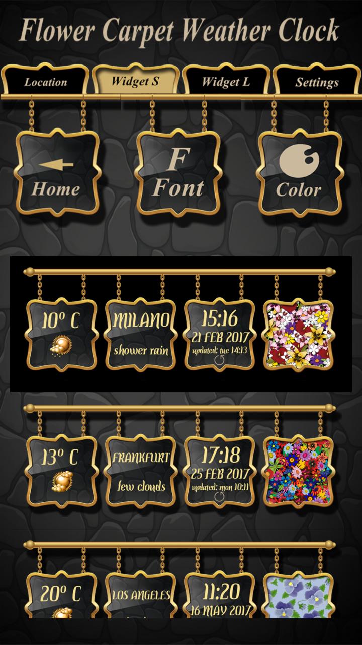 with带有最新的◘ Flower Carpet Weather Clock进入最美丽的花园,并为您的设备提供全新的外观。如果您是一个花卉爱好者,并且喜欢由植物制成的装饰,那么当您看到我们为您准备的东西时,您会感到非常兴奋。这个流行的应用程序会让您感觉好像在充满花朵的田野里,许多颜色会以最好的方式装饰智能手机和平板电脑。如果您厌倦了使用仅显示云和太阳的普通小部件,那么现在您最终可以拥有完全不同的东西。我们为您提供最准确的预测,您可以依靠它,因此,您将始终了解天气,您会知道离开家时会发生什么。如果您喜欢到目前为止所听到的有关此顶级应用程序的信息,请不再等待免费下载◘ Flower Carpet Weather Clock !