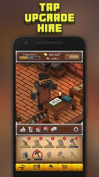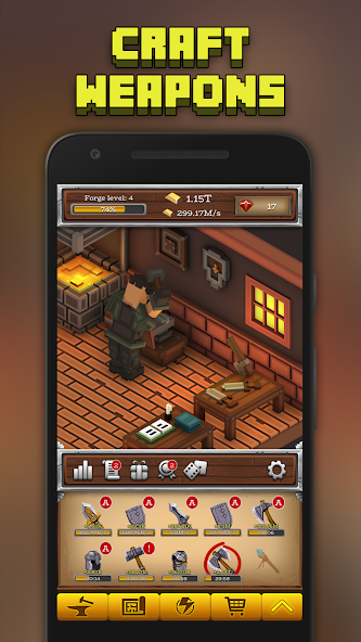 工艺武器和盔甲,赚钱,成为一名富有的铁匠!下载ForgeCraft - 闲置的Tycoon,一个块状的像素图形闲置点击器游戏,并发挥作用。