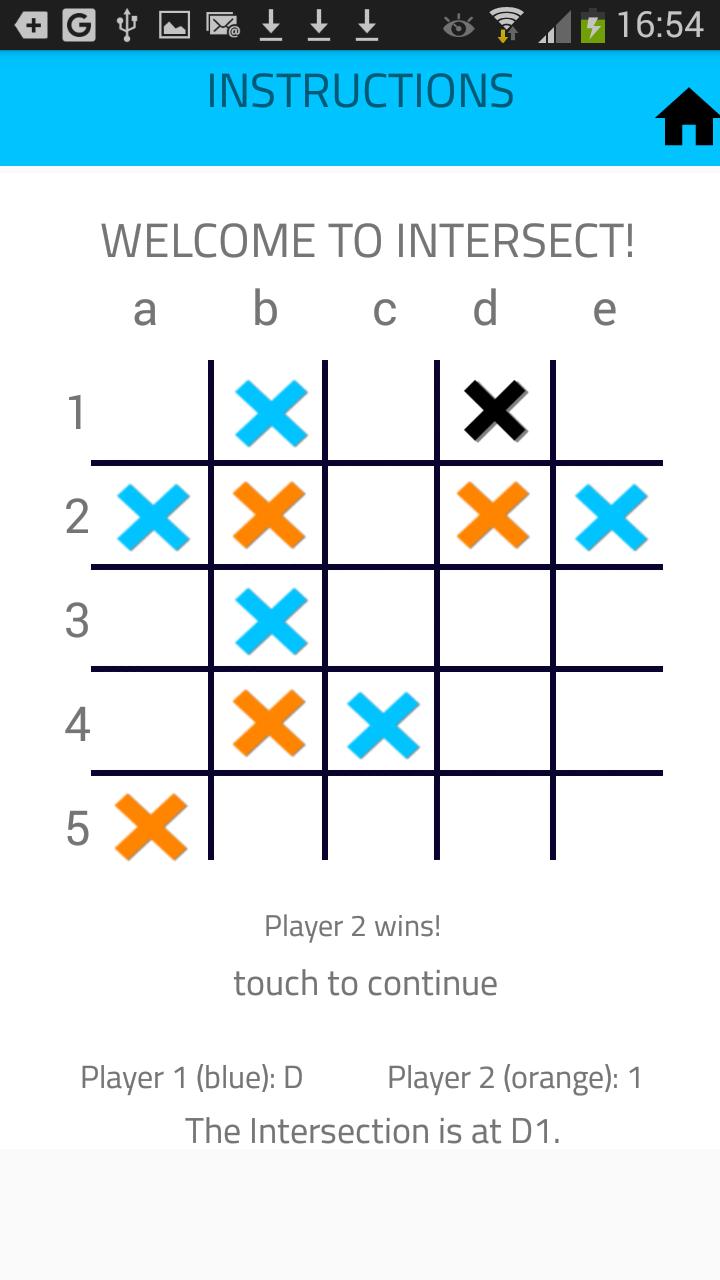 Intersect是一款两人游戏,其目的是找到每个玩家选择的行和列之间的Intersect离子。玩家1选择一列;玩家2选择一排。正如播放器1所知道的那样, Intersect离子位于选定的列沿某个地方,并且玩家2知道, Intersect离子在所选行沿某个地方,它成为找到Intersect离子而无需提供您选择的策略游戏。在战术上播放,虚张声势或只是随机猜测:选择是您的!